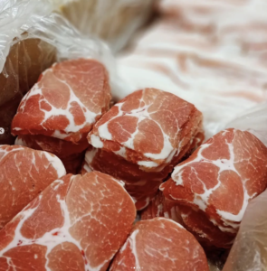 肉の名門島田屋さんのソーセージと麺屋剛のゴロゴロチャーシューがコラボしたふわふわで上品なソーセージです。